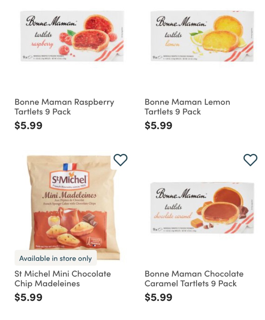 The World Market references many French products especially the cookies from my childhood Bonne Maman Fruit Tartlets and Saint Michel Madeleine.